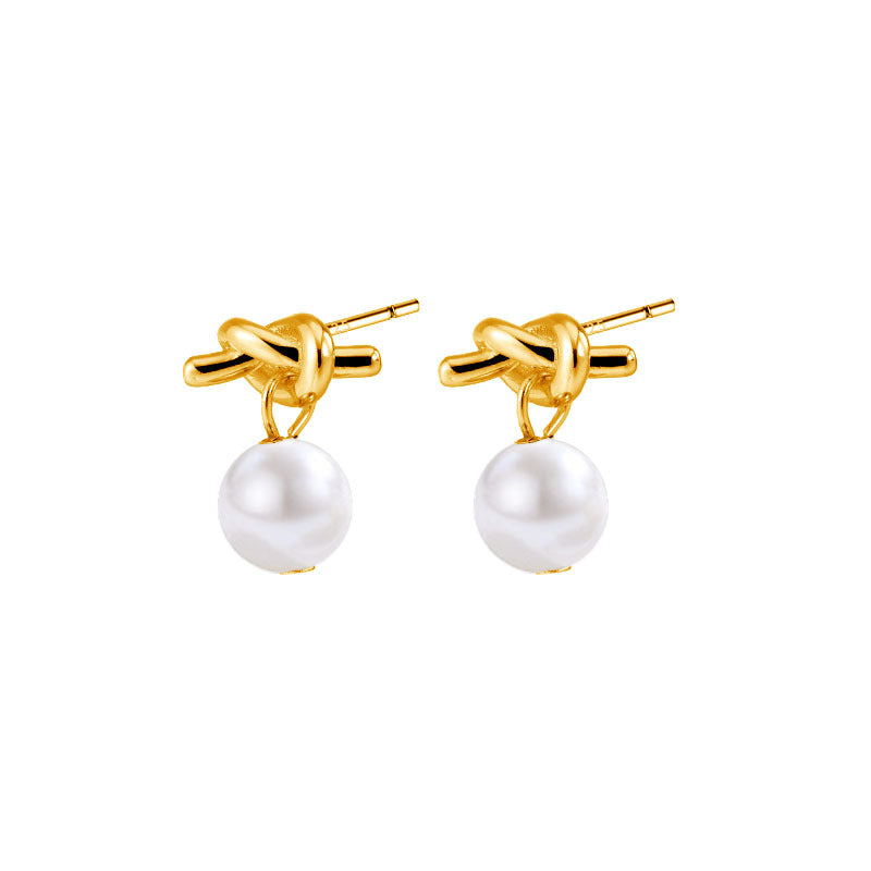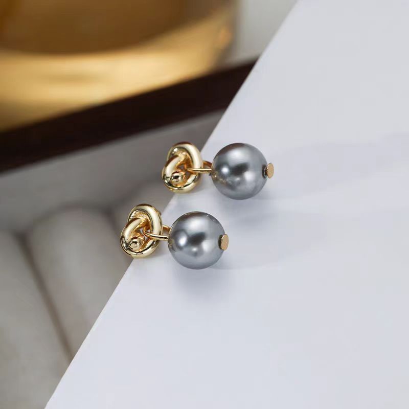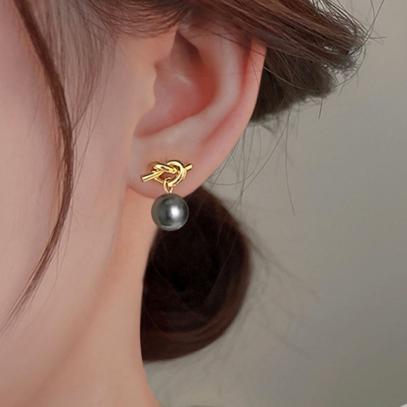 Sterling Silver Knotted Small Gray And White Pearl Earrings