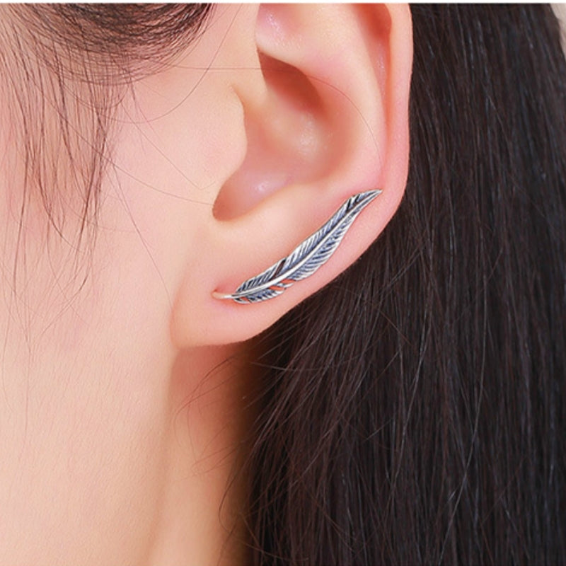 Sterling Silver Leaf Crawler Earrings