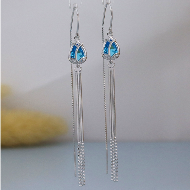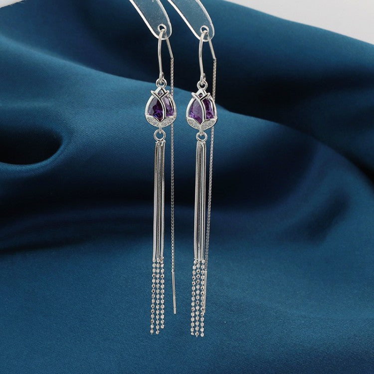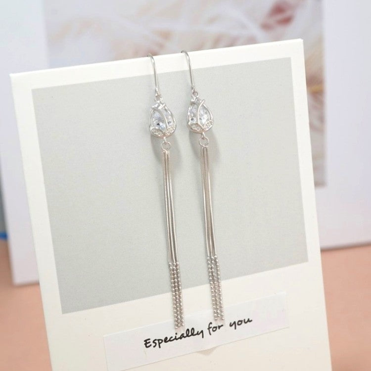 Sterling Silver Luxurious Tulip Tassel Threader Earrings