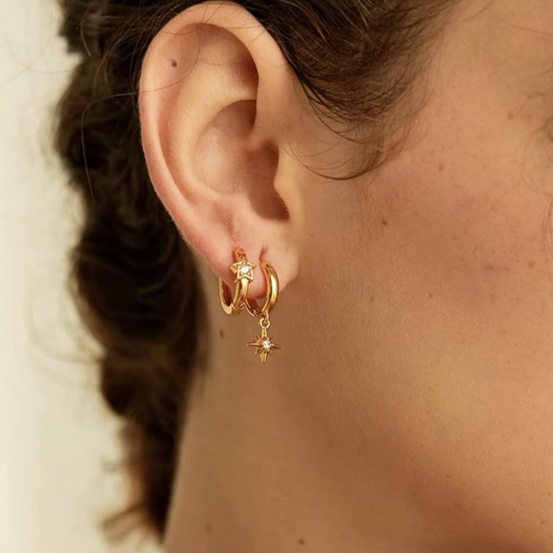 Sterling Silver Luxury Asymmetrical Star Earrings