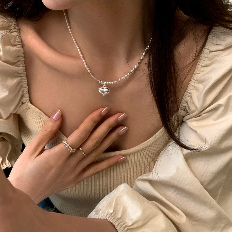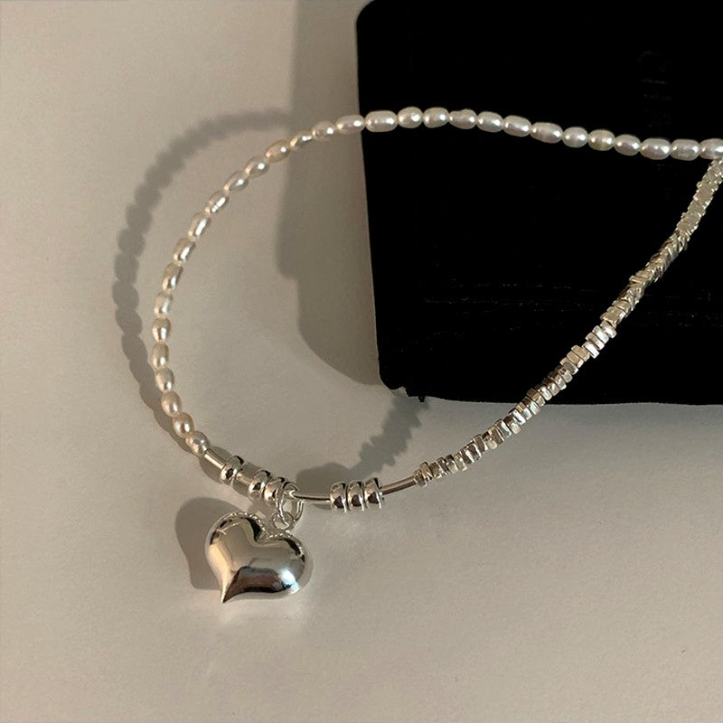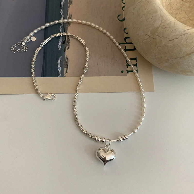 Sterling Silver Luxury Broken Silver Love Heart Pearl Necklaces