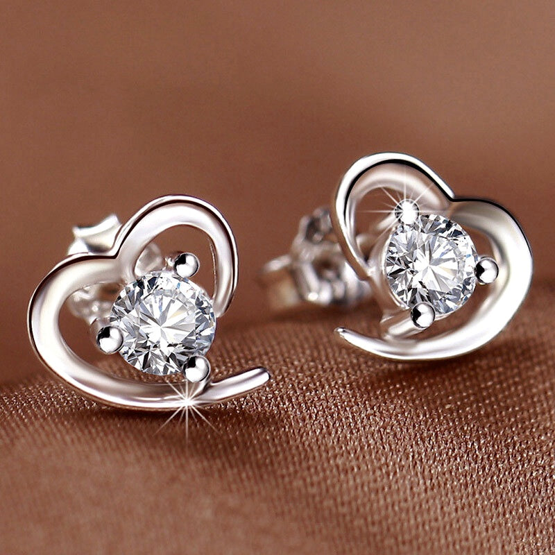Sterling Silver Luxury Diamond Heart Studs