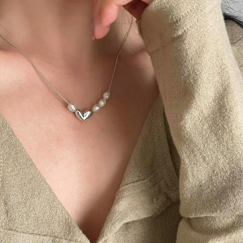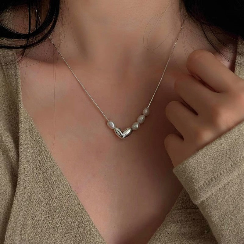 Sterling Silver Luxury Heart-Design Pearl Necklaces