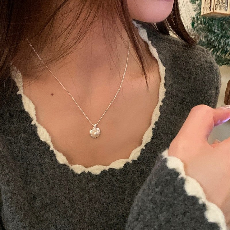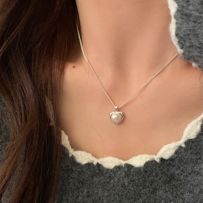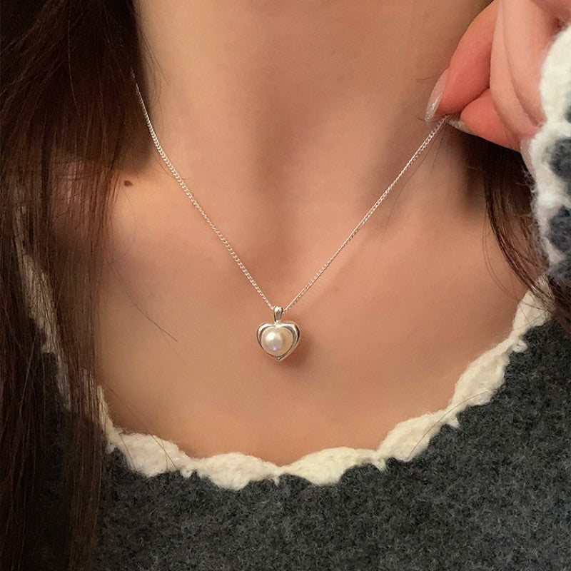 Sterling Silver Luxury Heart-Design Pearl Necklaces