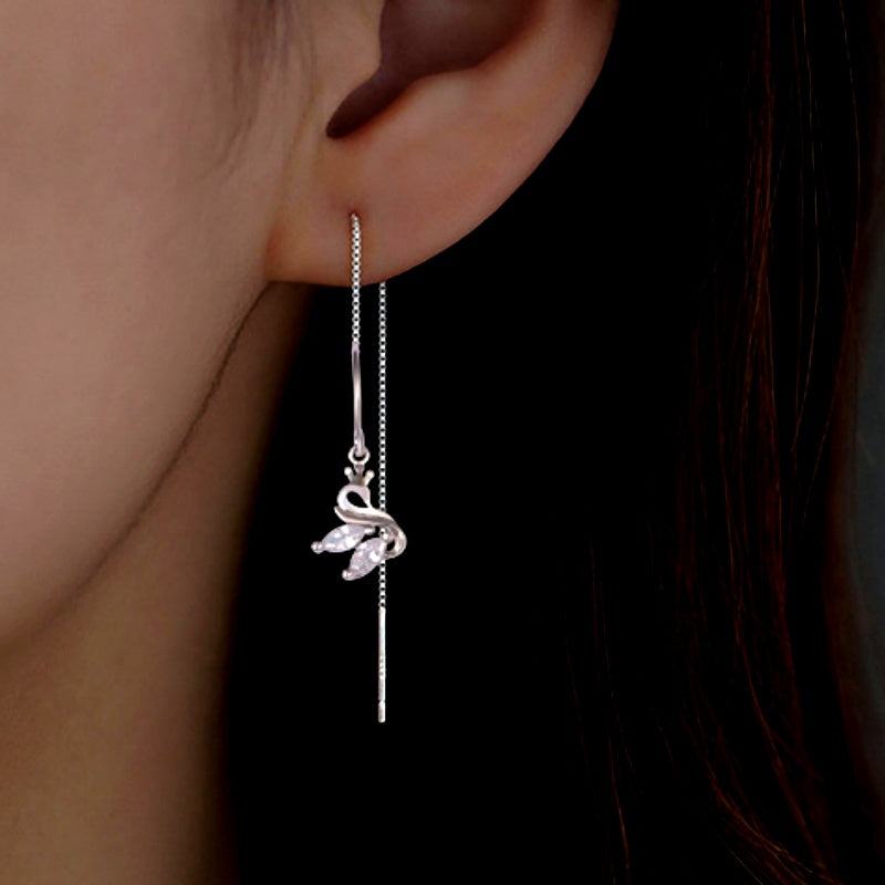 Sterling Silver Luxury Swan Threader Earrings