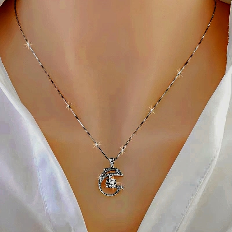 Sterling Silver Luxury Zircon Dolphin Clavicle Necklace