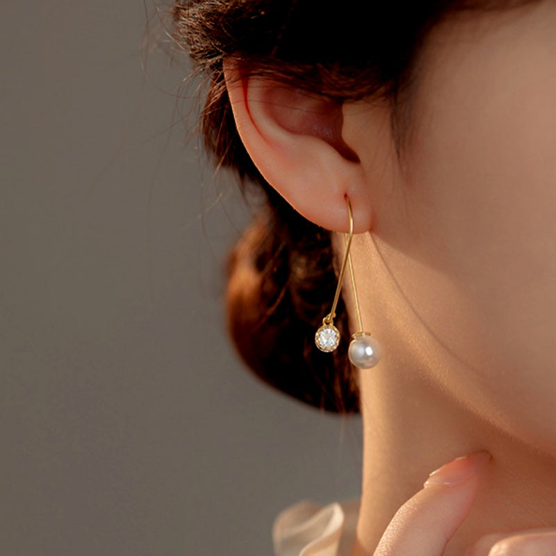 Sterling Silver Mermaid Cross Long Pearl Earrings