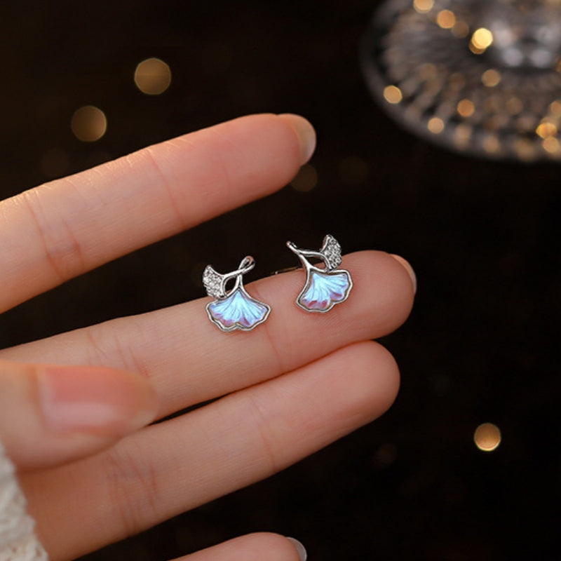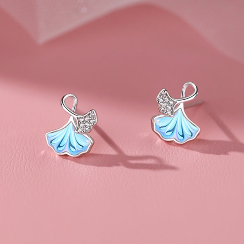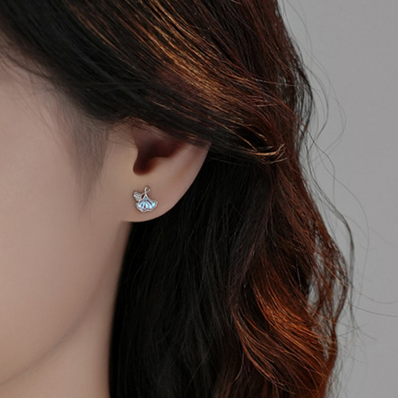 Sterling Silver Moonstone Leaf Stud Earrings
