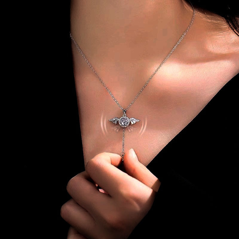 Sterling Silver Moving Angel Heart Wings Necklaces