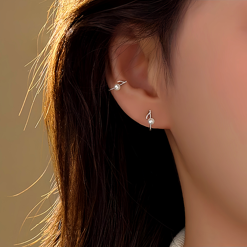 Sterling Silver Note Pearl Ear Clips