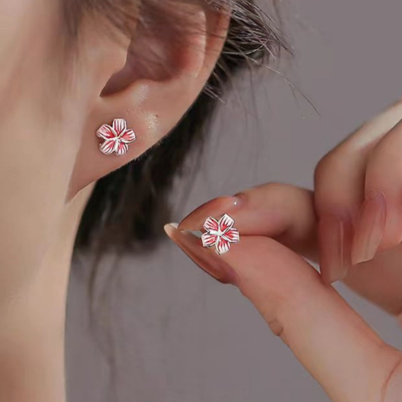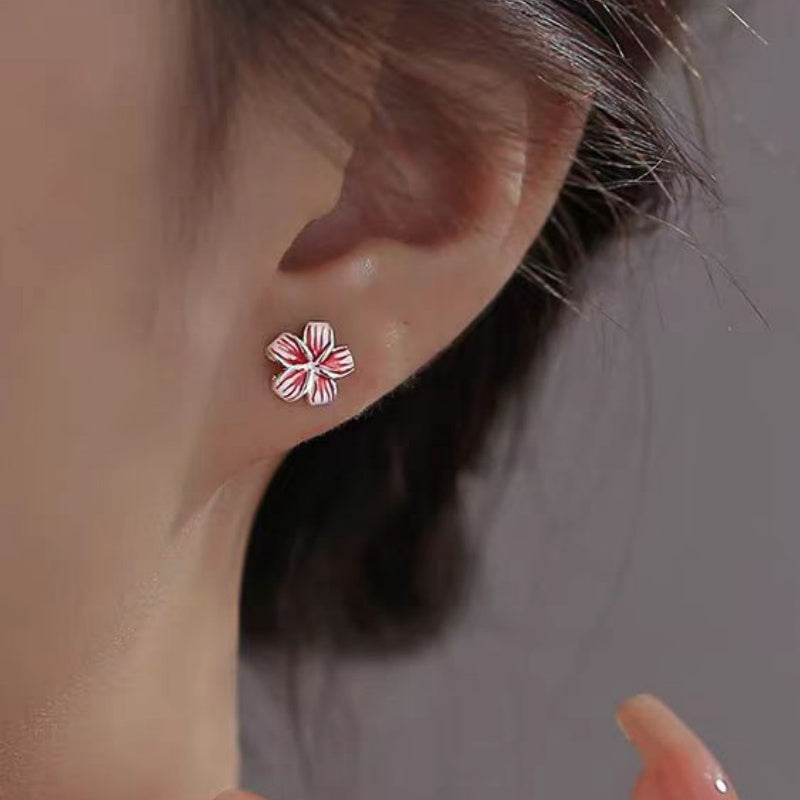 Sterling Silver Peach Red Five-Petal Flower Earrings