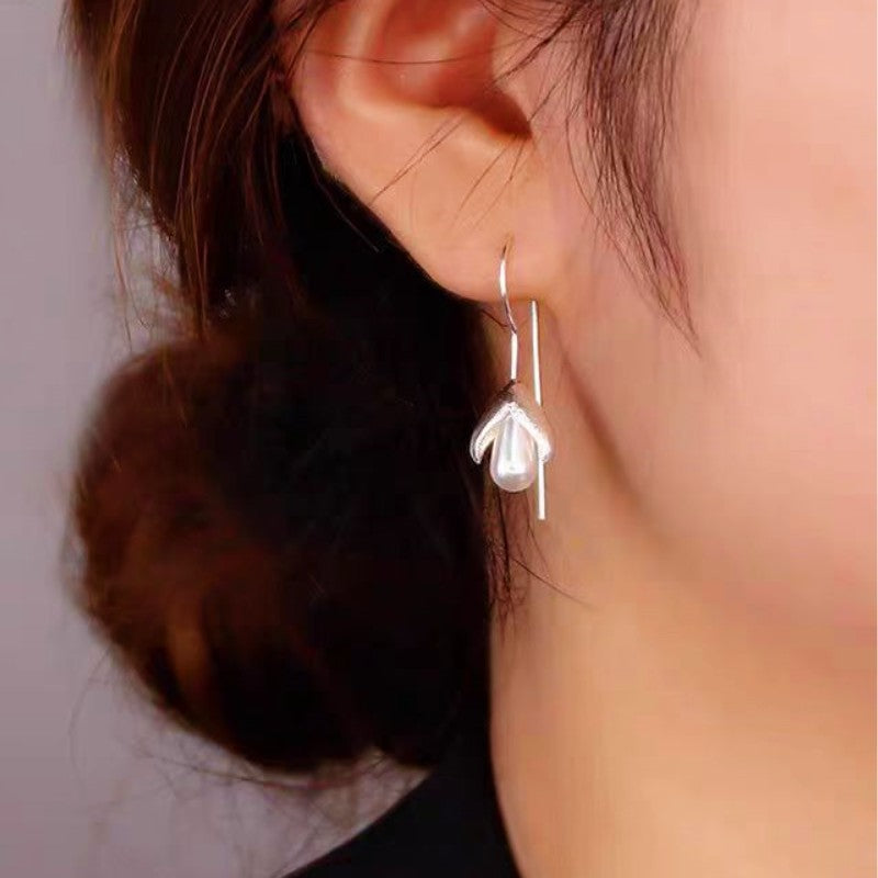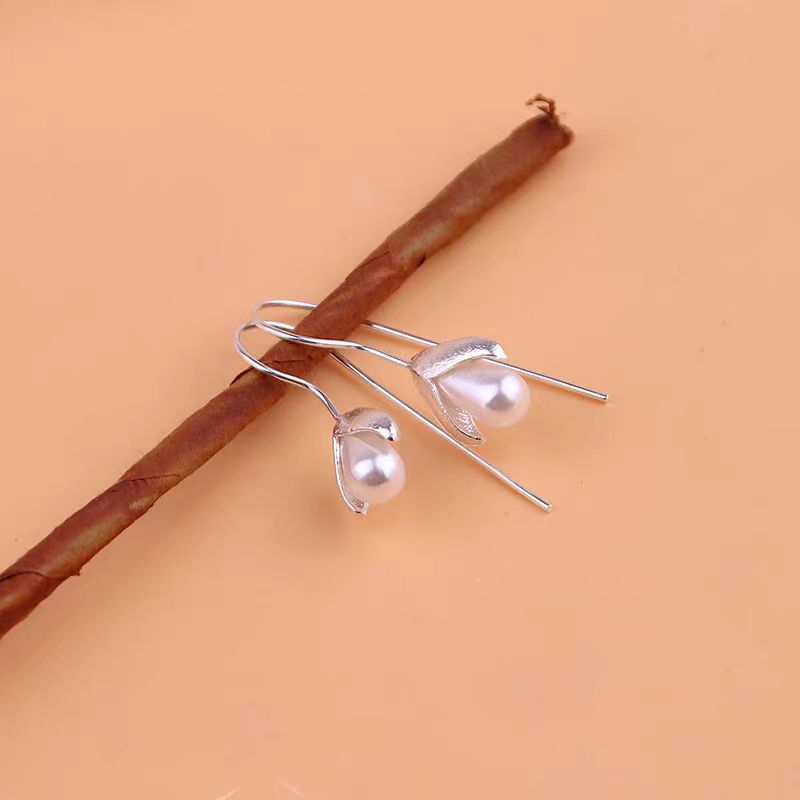 Sterling Silver Pearl Bud Ear Hook Earrings