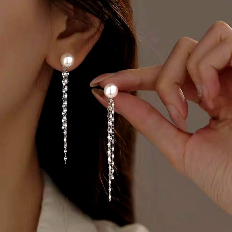 Sterling Silver Pearl Tassel Earrings