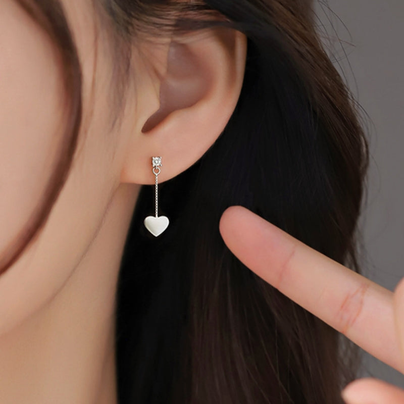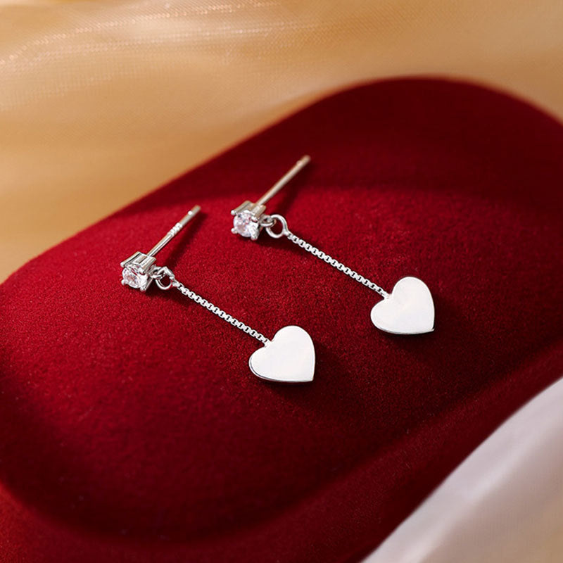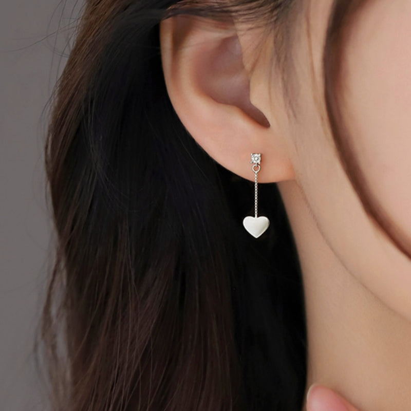 Sterling Silver Pearl Zircon Heart-Design Earrings