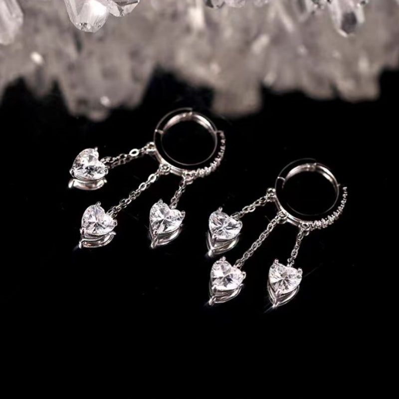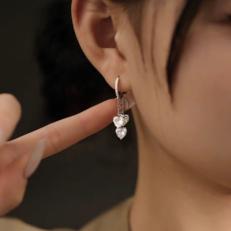 Sterling Silver Pearl Zircon Heart-Design Earrings