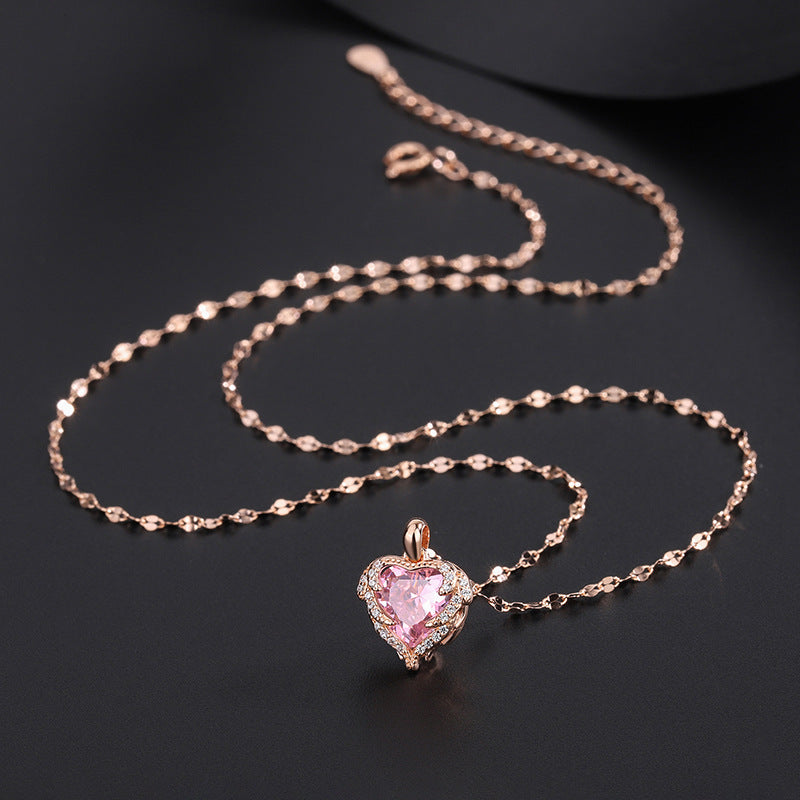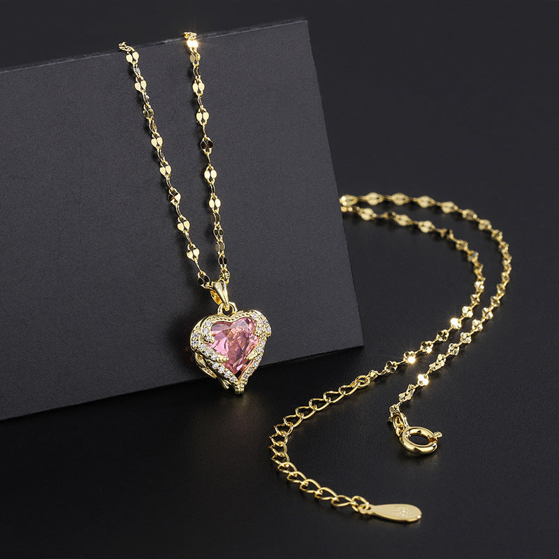 Sterling Silver Pink Diamond Heart-Design Necklaces