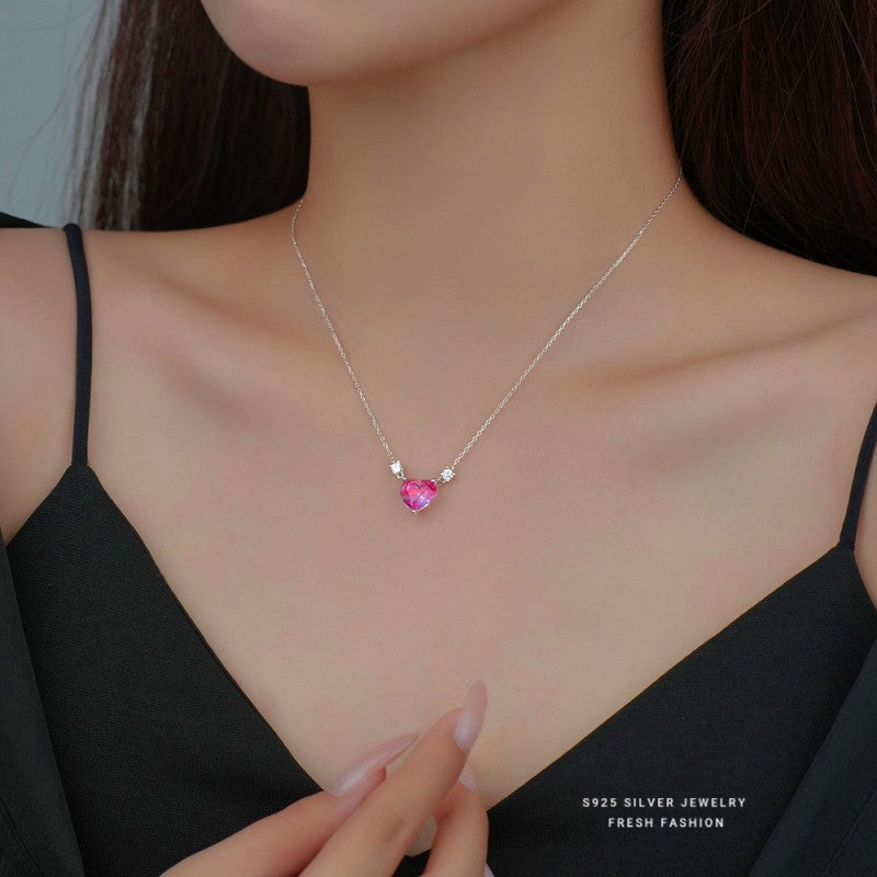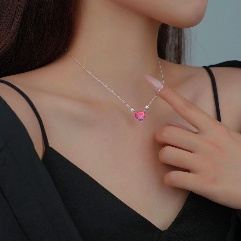 Sterling Silver Pink Diamond Heart Necklaces
