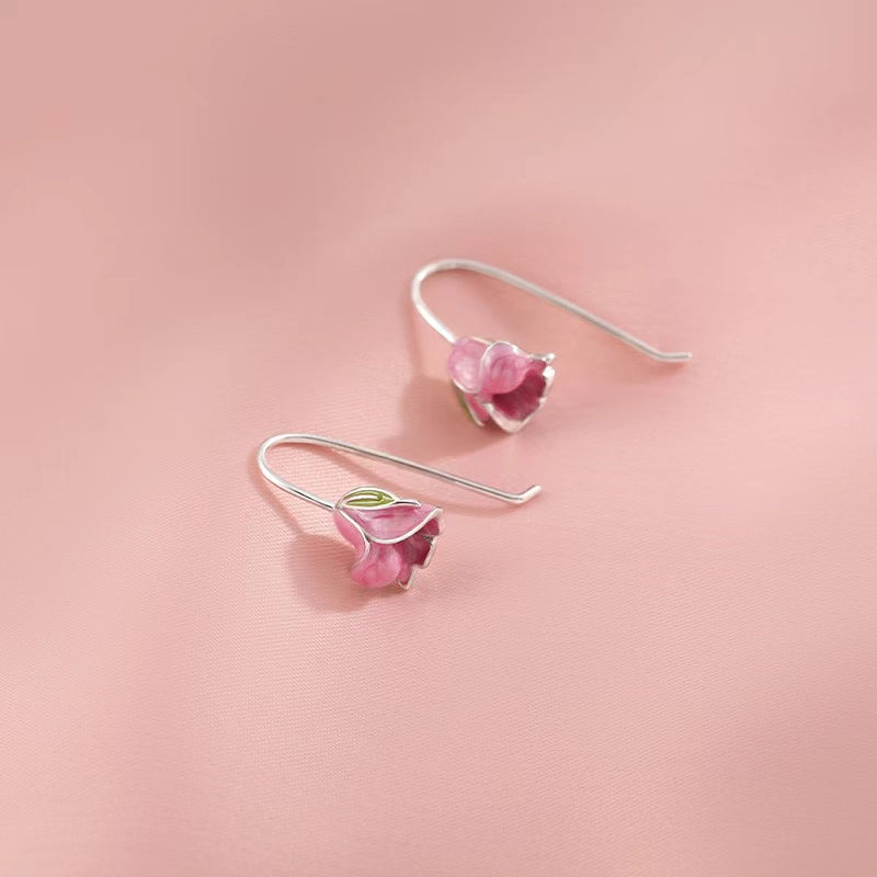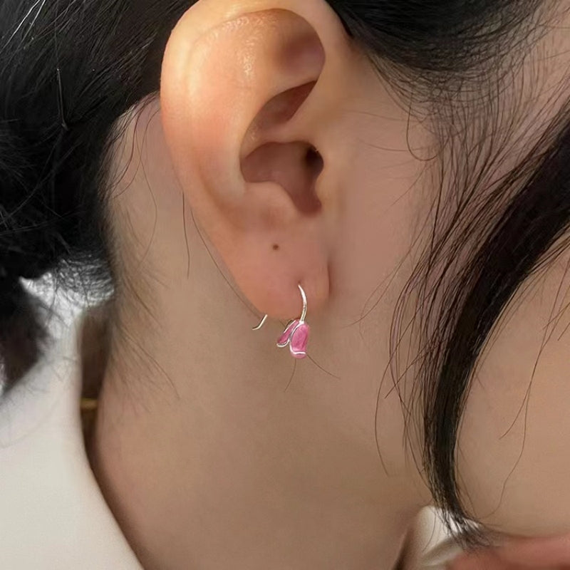 Sterling Silver Pink Tulip Earrings