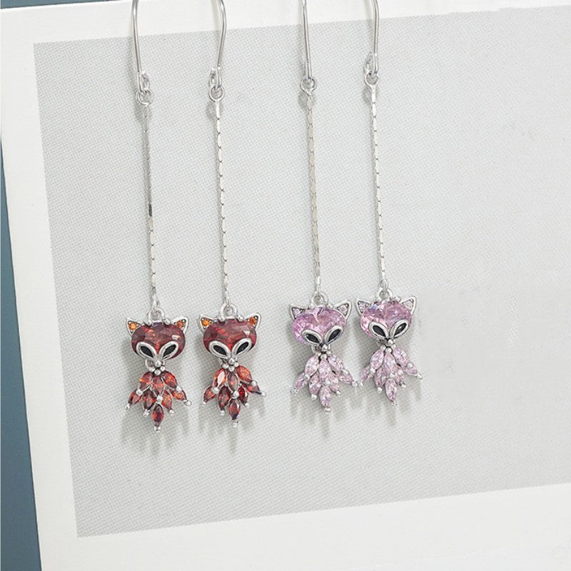 Sterling Silver Red And Pink Little Fox Threader Earrings