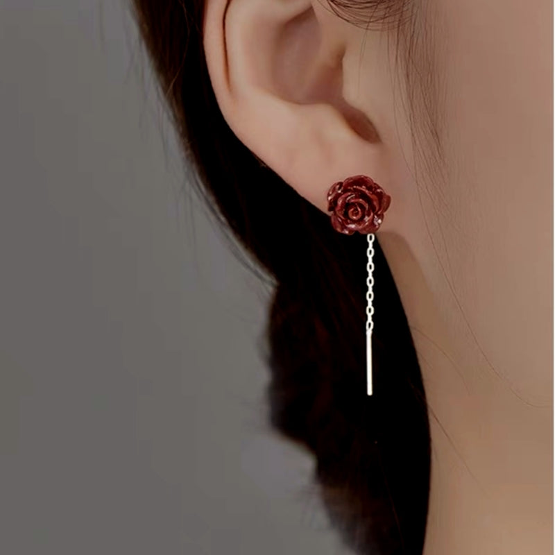 Sterling Silver Red Rose Threader Earrings