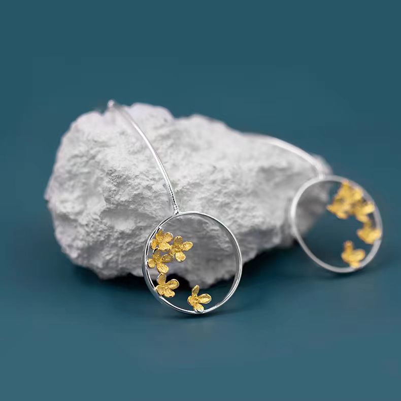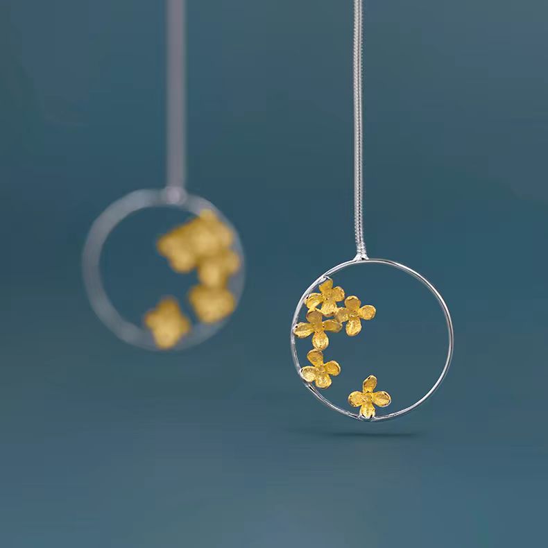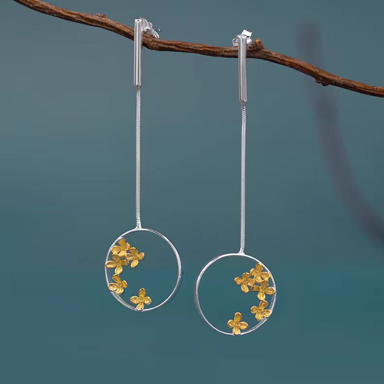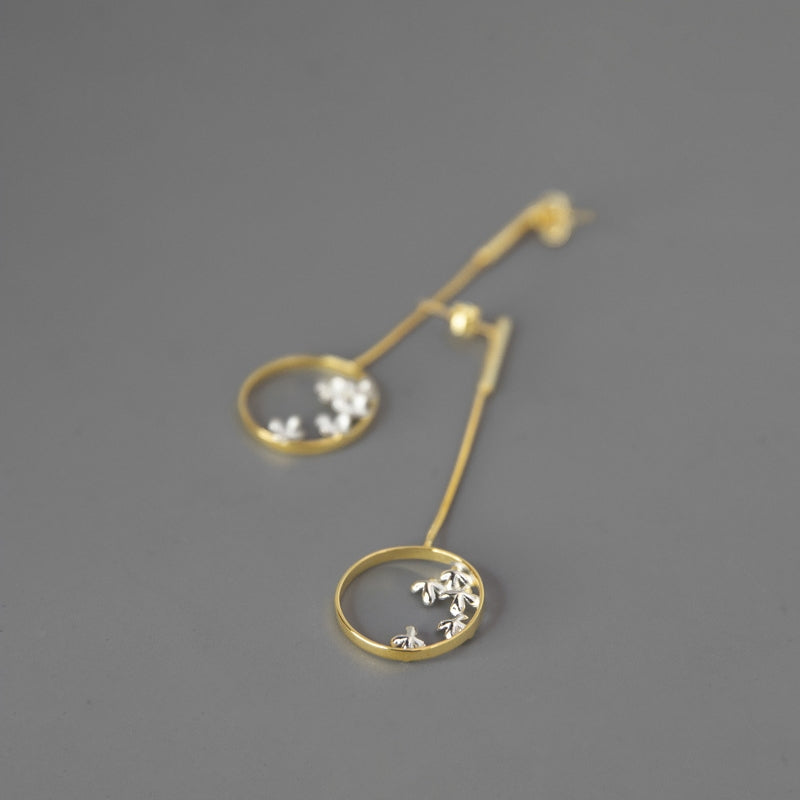Sterling Silver Round Osmanthus Fall Drop Earrings