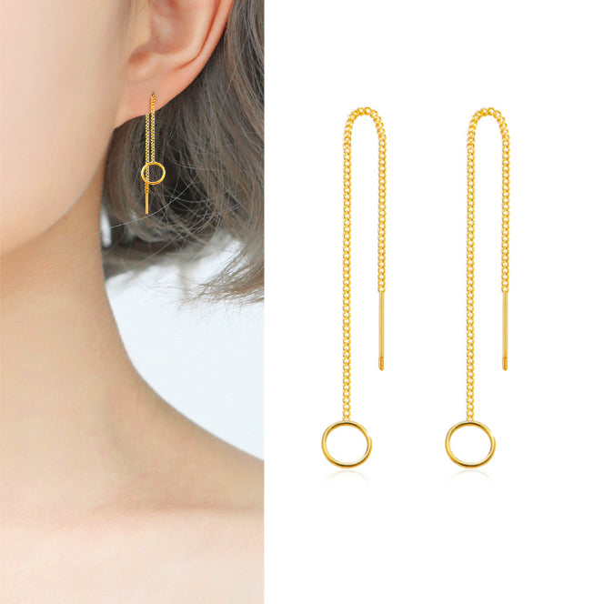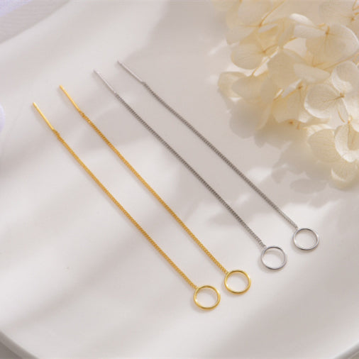 Sterling Silver Simple Circle Threader Earrings