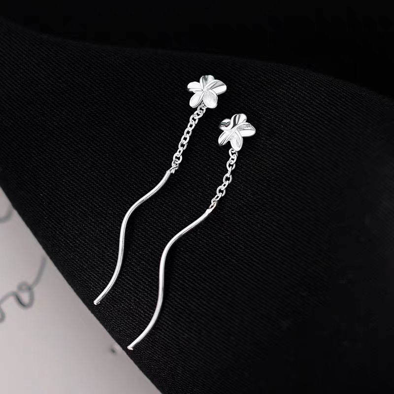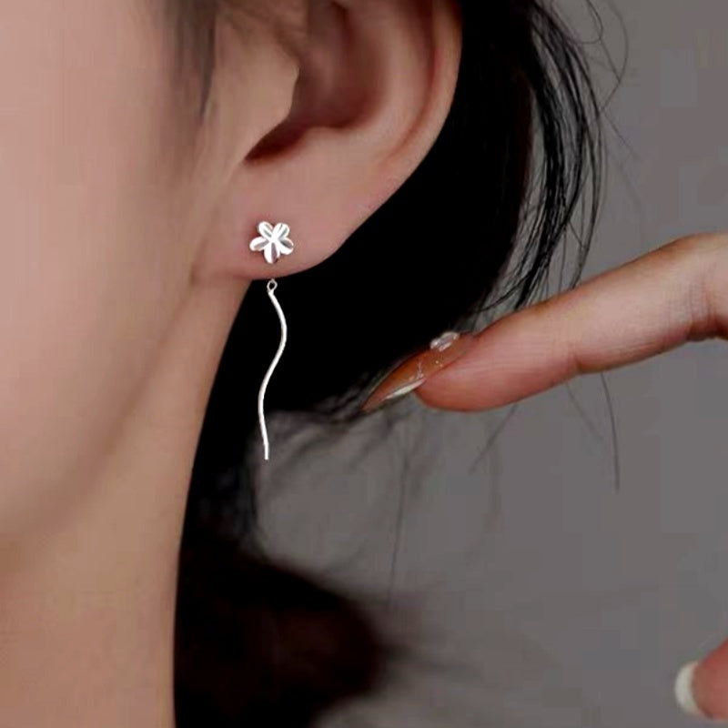 Sterling Silver Simple Flower Threader Earrings