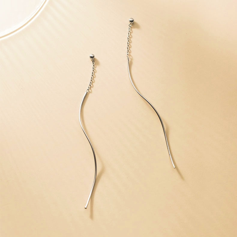 Sterling Silver Simple Wavy Threader Earrings