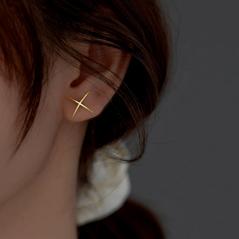 Sterling Silver Simple X-Shaped Stud Earrings