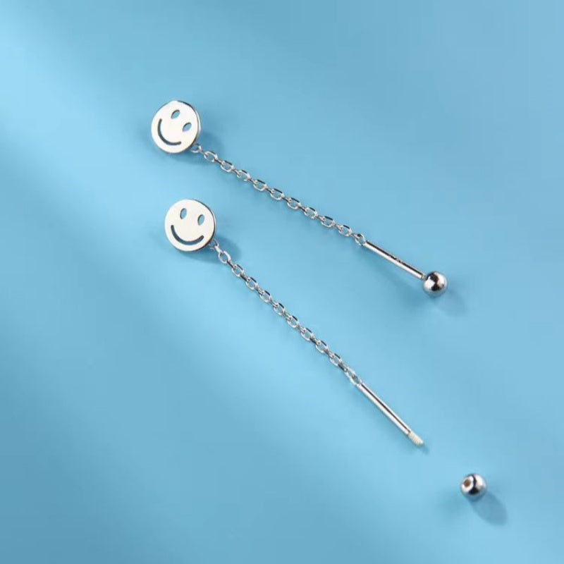 Sterling Silver Smiley Face Threader Earrings