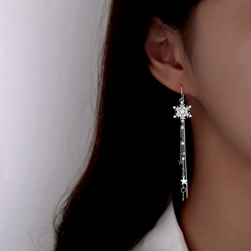Sterling Silver Snowflake Star Threader Tassel Earrings