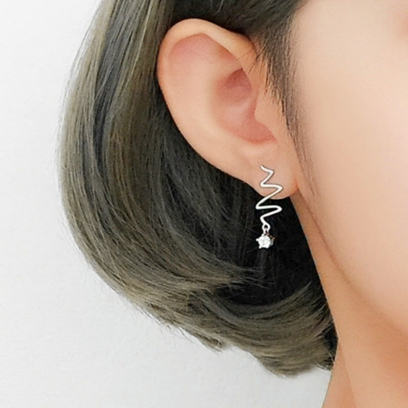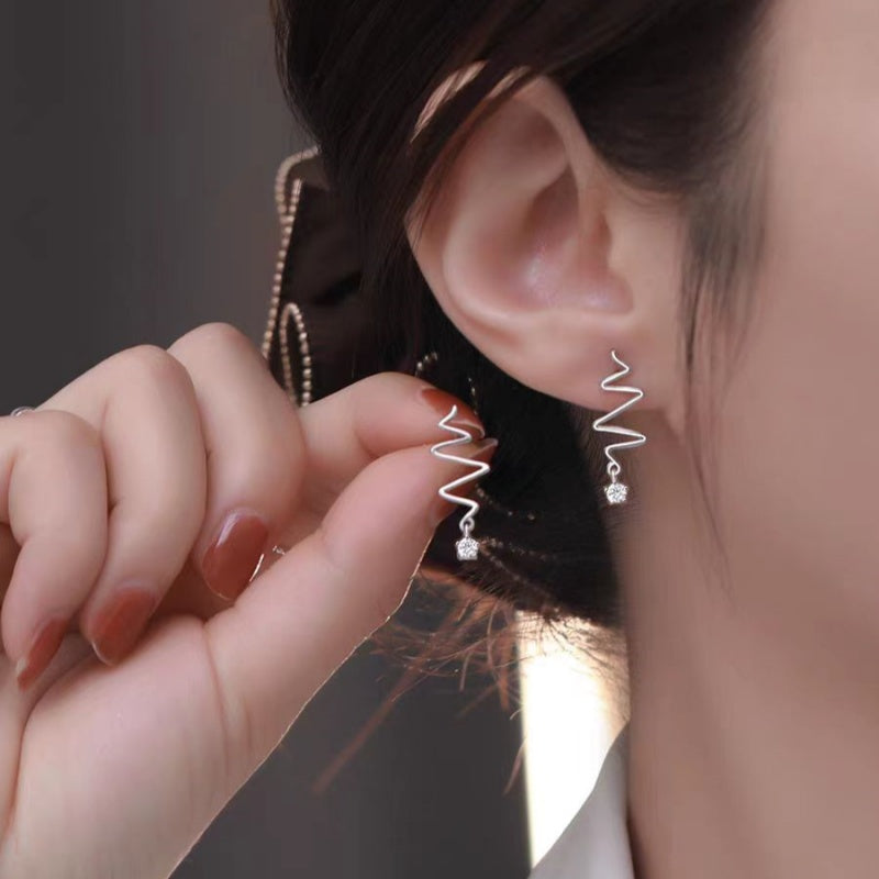 Sterling Silver Solitaire Wave Heartbeat Earrings