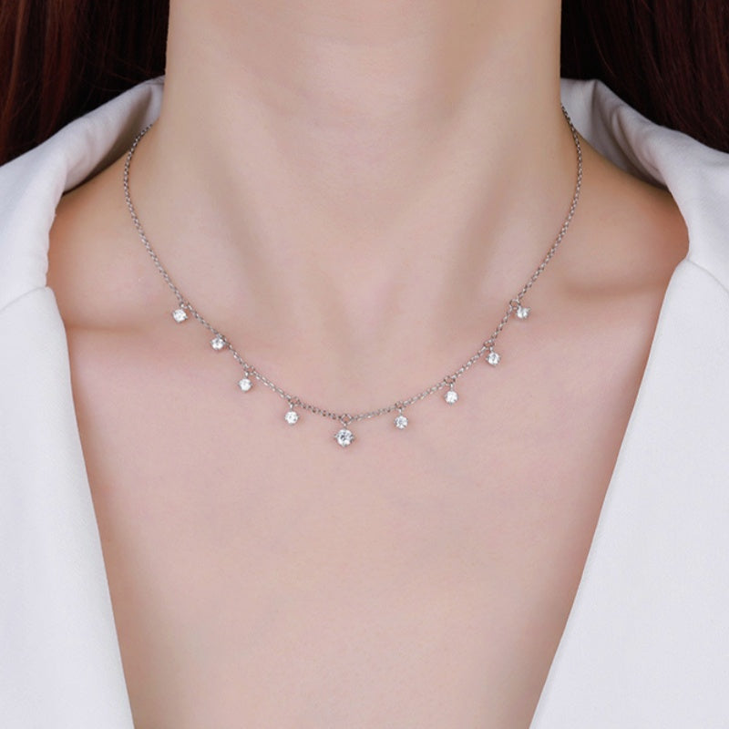 Sterling Silver Sparkling Moissanite Graf 1.1 Carat Clavicle Chain Necklaces