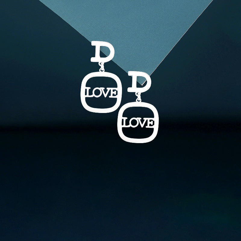 Sterling Silver Square LOVE Letter Earrings