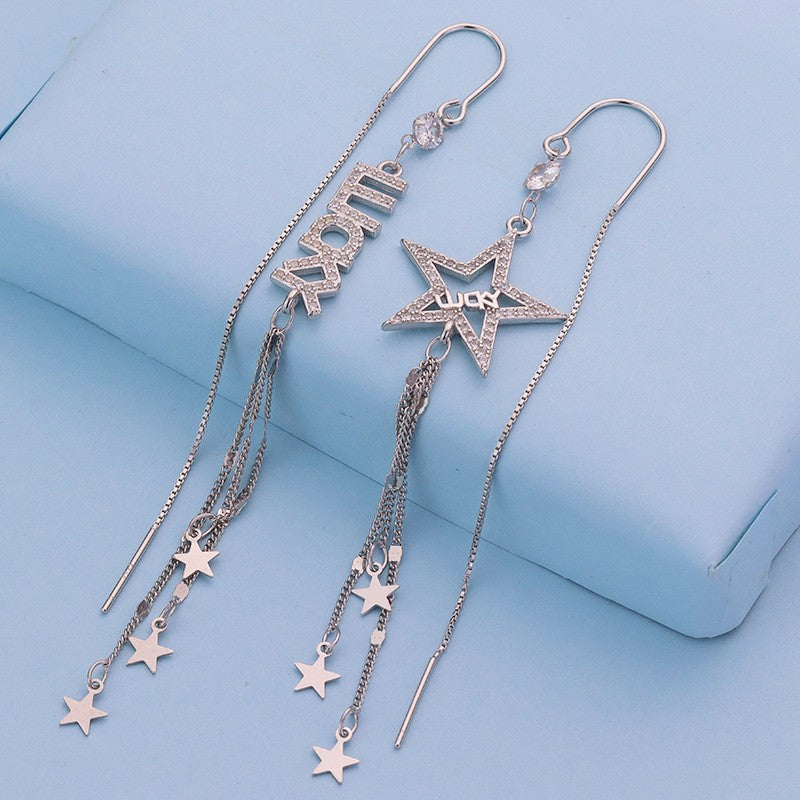 Sterling Silver Star LUCKY Tassel Threader Earrings