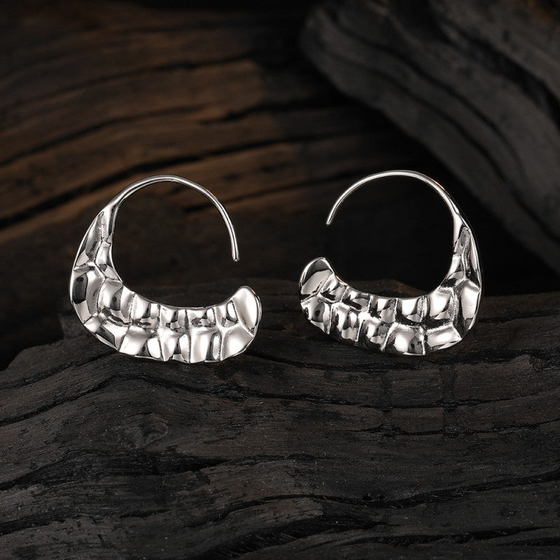 Sterling Silver Textured Curved Bag Earrings