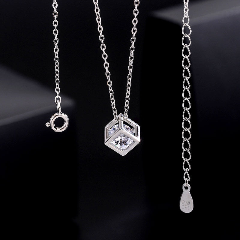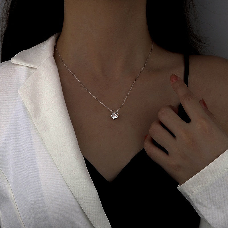Sterling Silver Three-Dimensional Hollow Cube Necklace