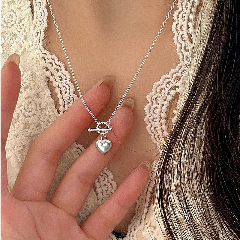Sterling Silver Three-Dimensional Love Heart Necklaces
