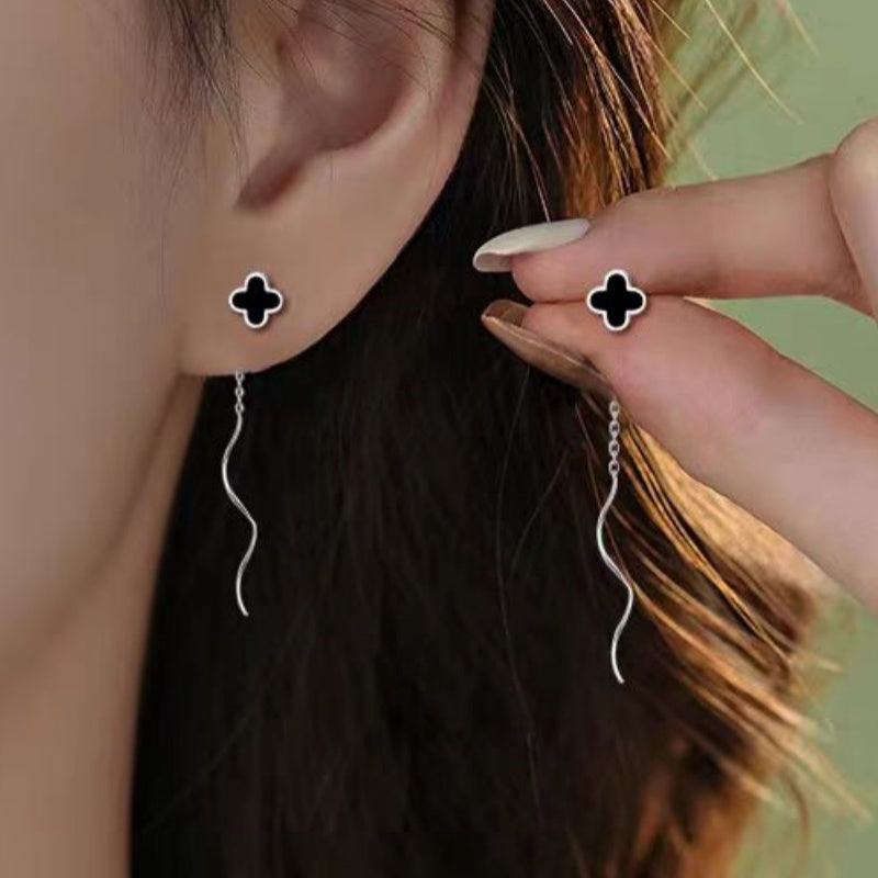 Sterling Silver Wavy Four-Leaf Threader Earrings