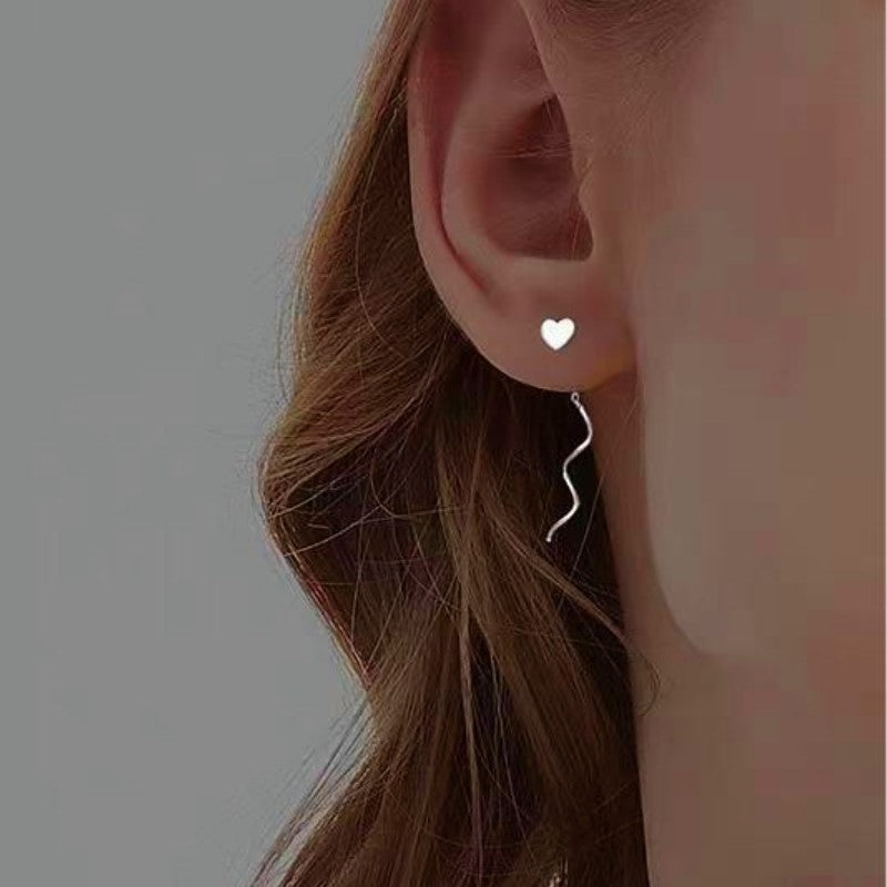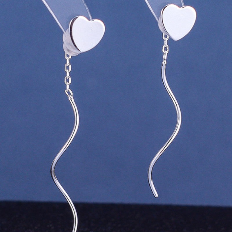 Sterling Silver Wavy Heart-Design Threader Earrings