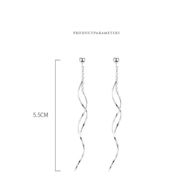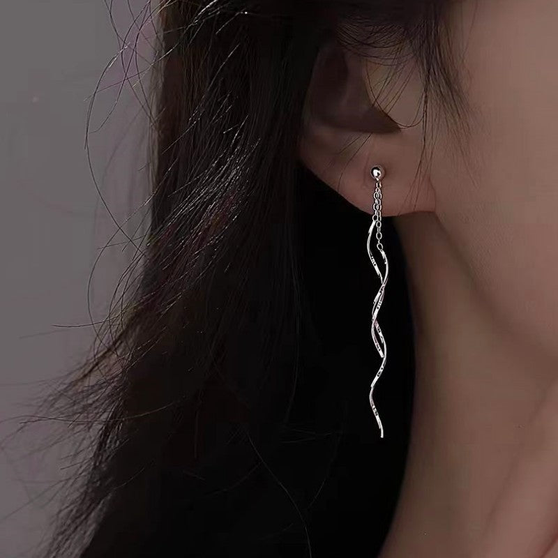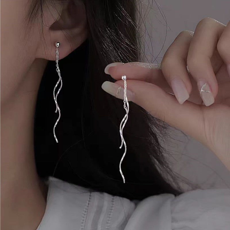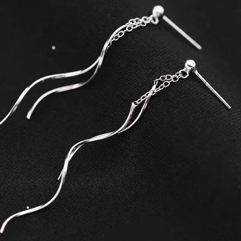 Sterling Silver Wavy Long Earrings