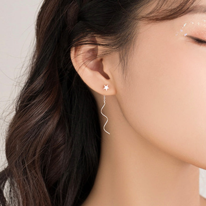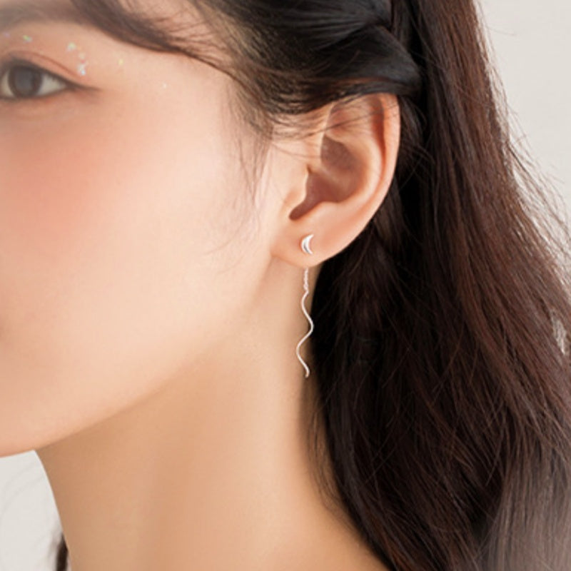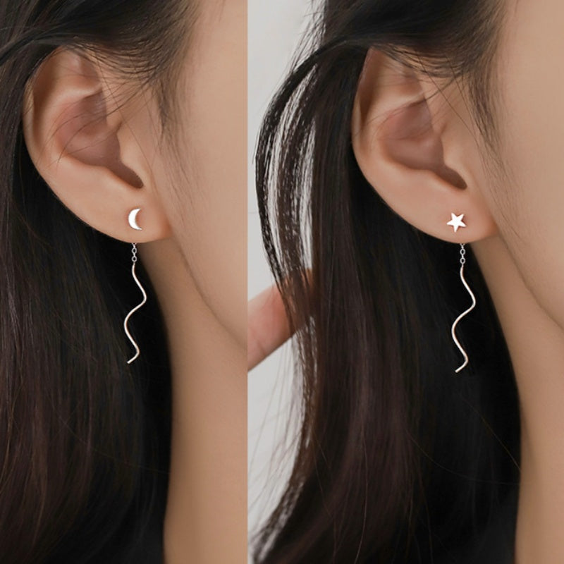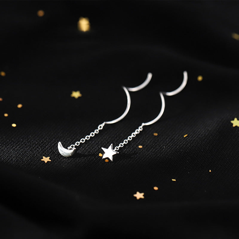 Sterling Silver Wavy Star And Moon Threader Earrings