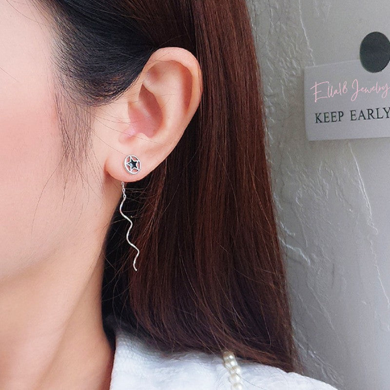 Sterling Silver Wavy Star Threader Earrings