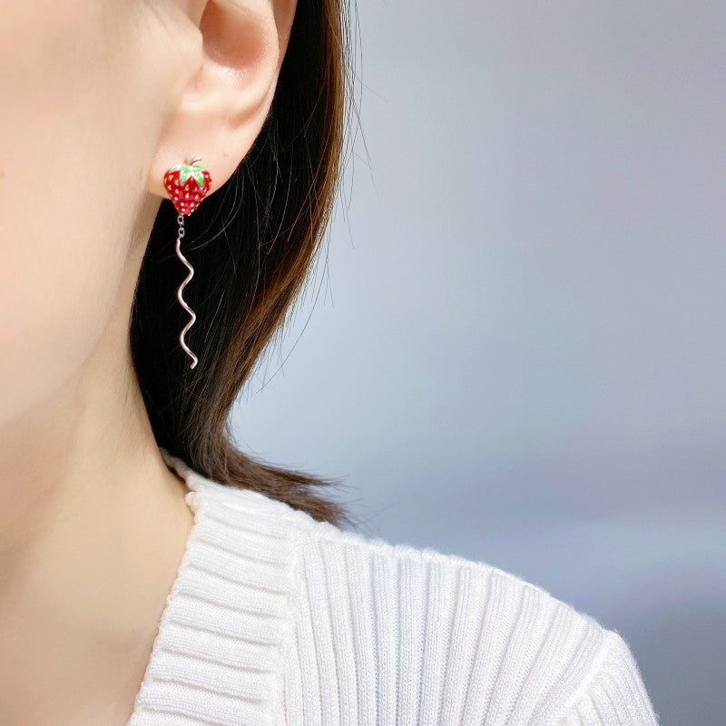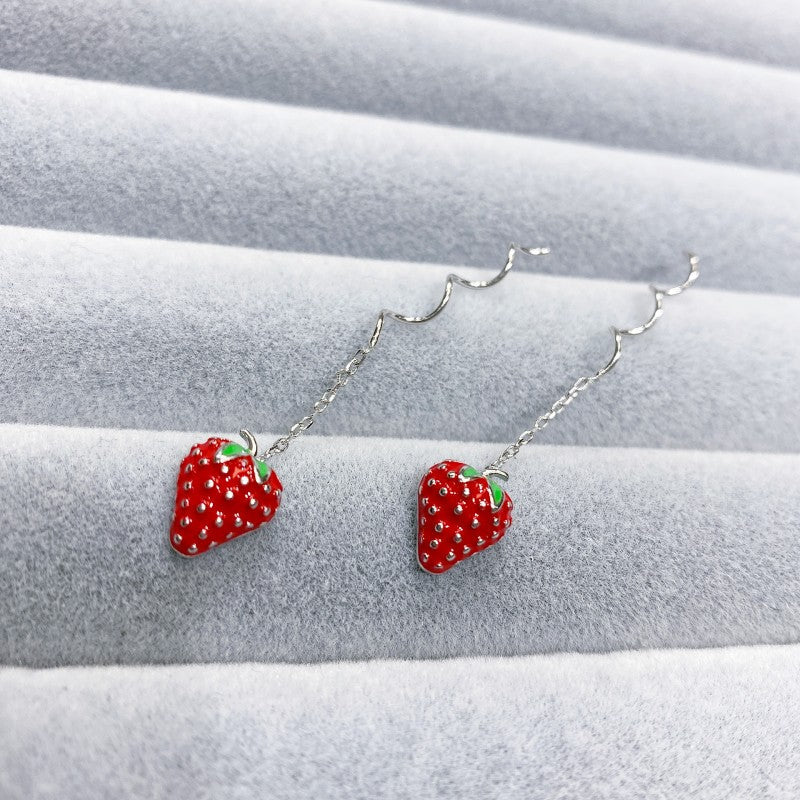Sterling Silver Wavy Strawberry Threader Earrings