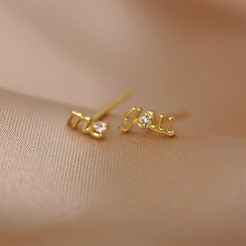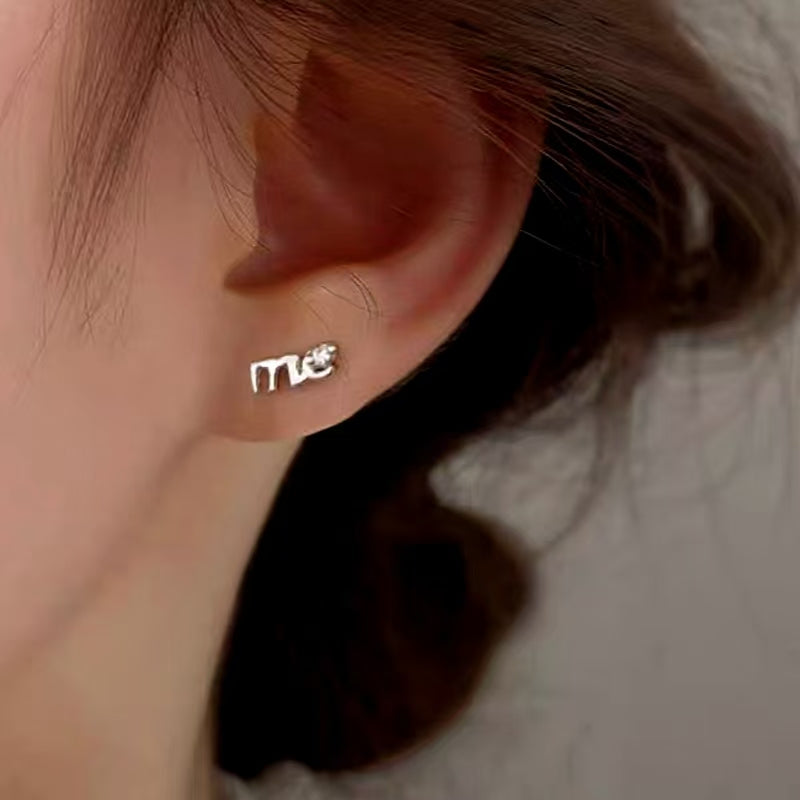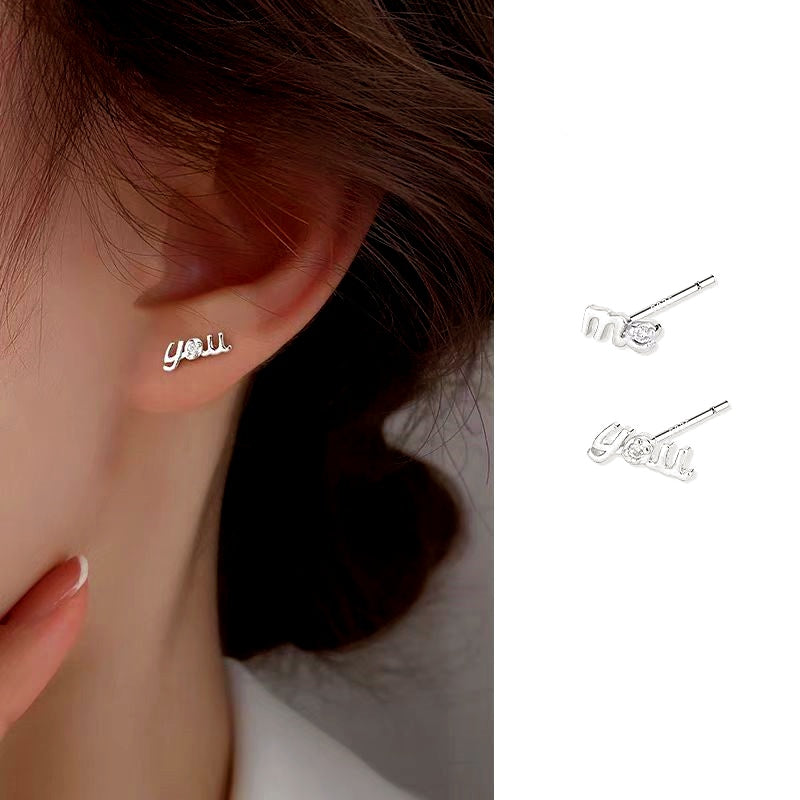 Sterling Silver YOU & ME Asymmetrical Stud Earrings
