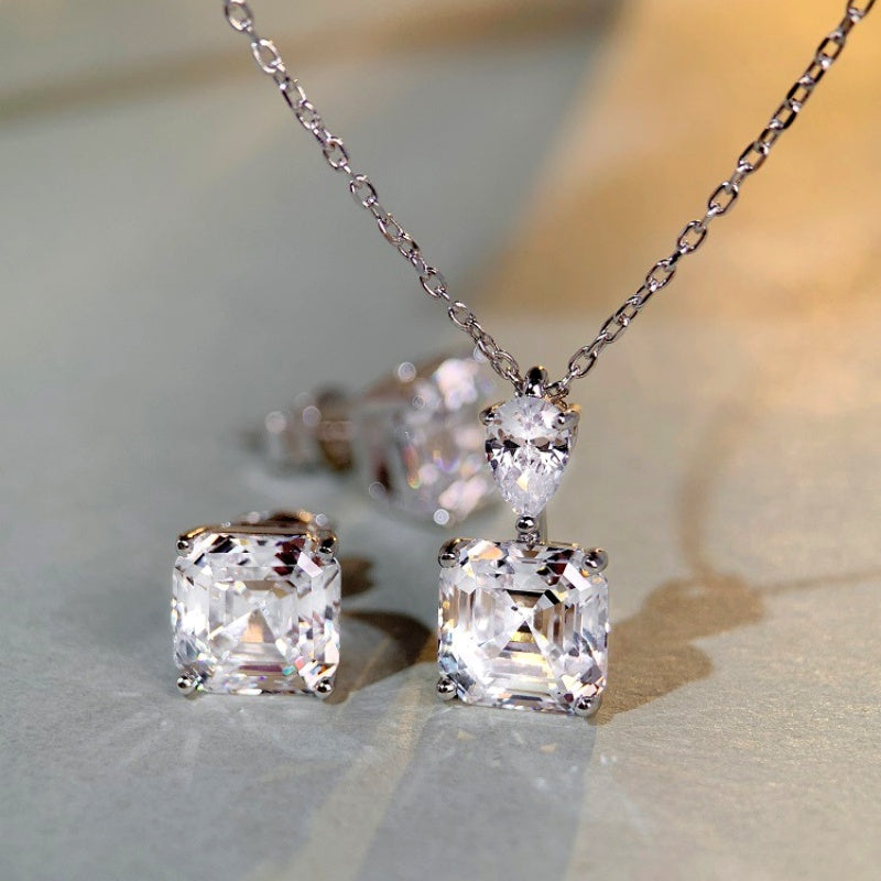 Sterling Silver Zircon Carbon Diamond Earrings And Necklace Set