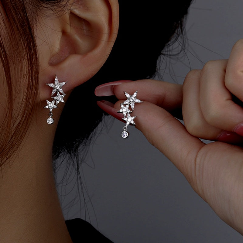 Sterling Silver Zircon Five-Pointed Star Earrings