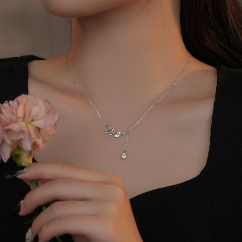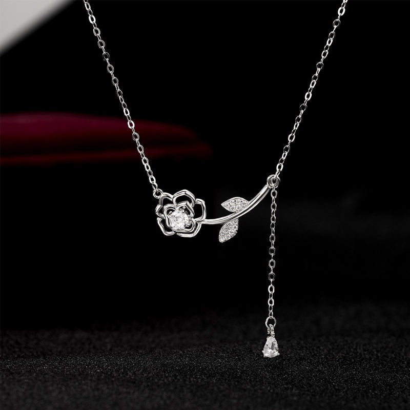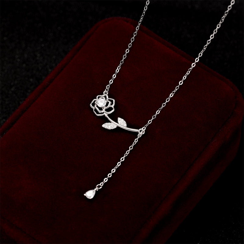 Sterling Silver Zircon Flower Clavicle Chain Necklaces