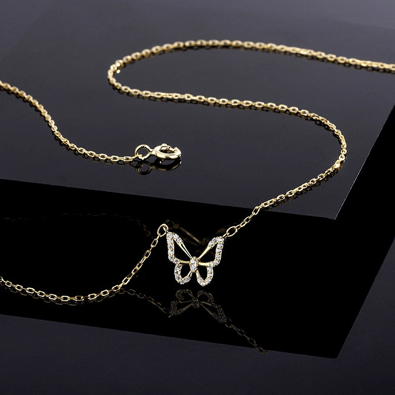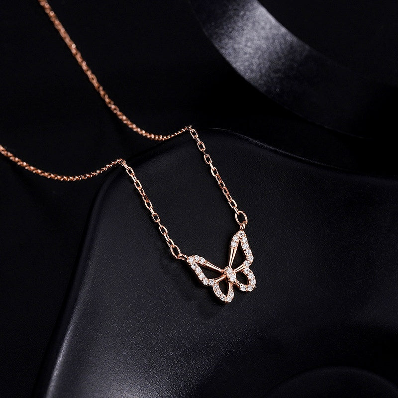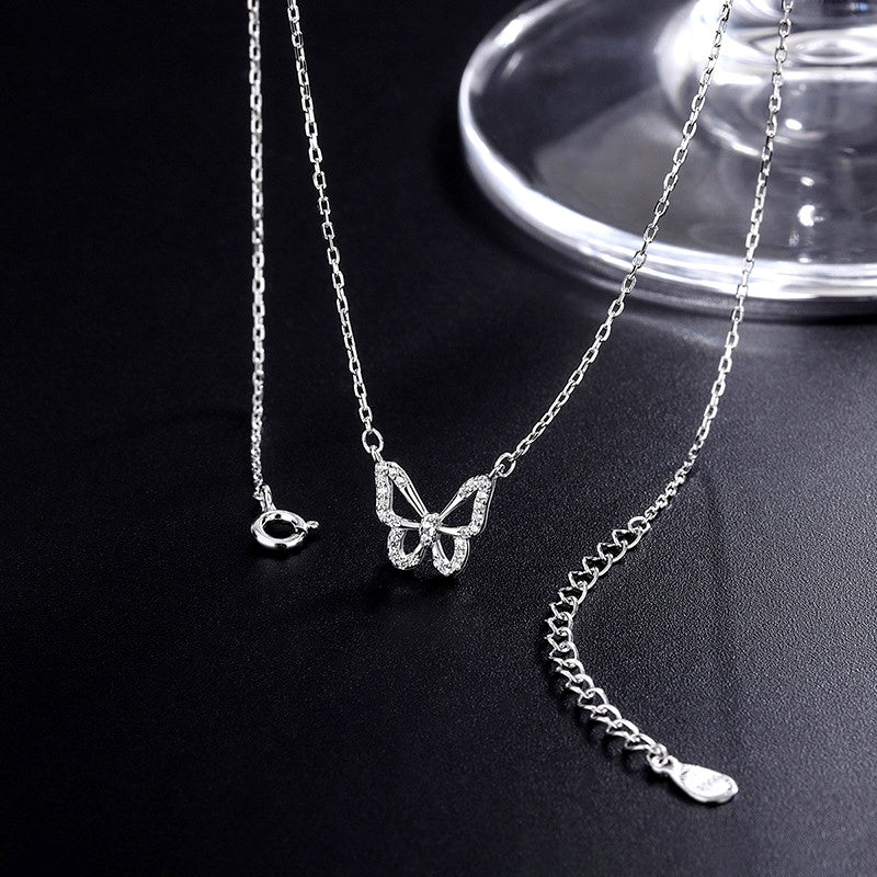 Sterling Silver Zircon Hollow Butterfly Necklace