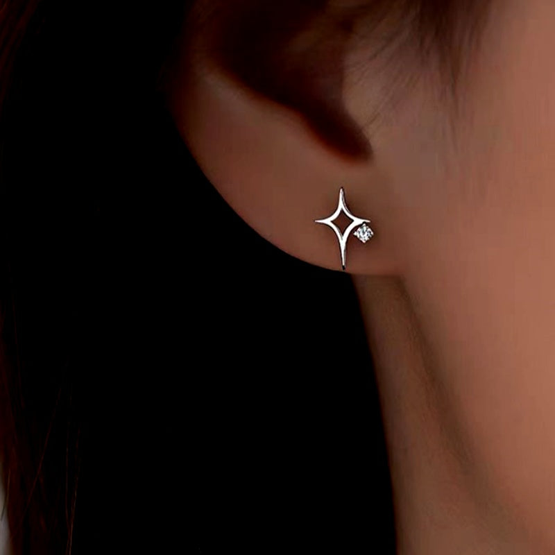 Sterling Silver Zircon Hollow Four-Cornered Star Stud Earrings